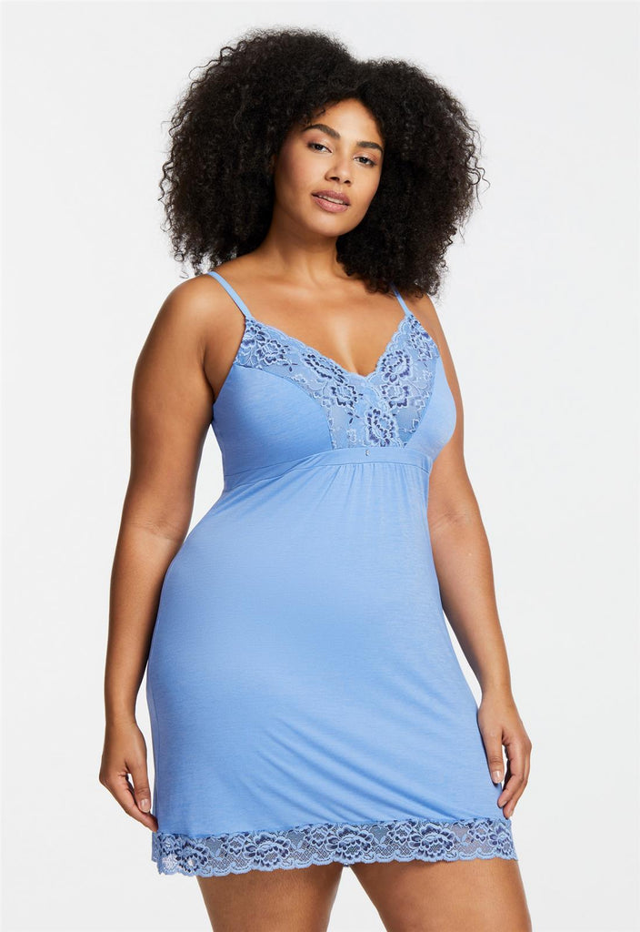 • Flattering A-line chemise in ultra-soft microfiber and lace