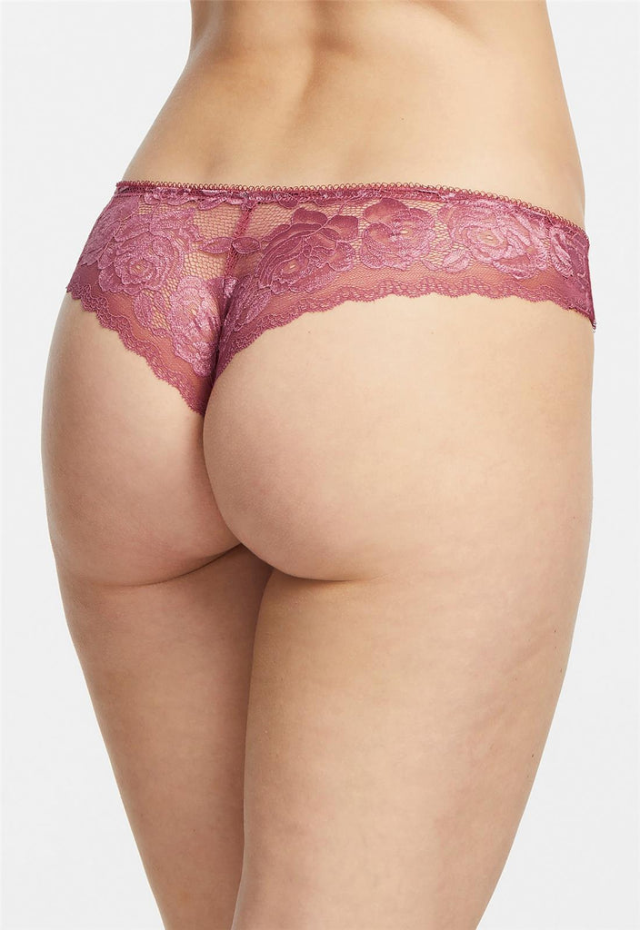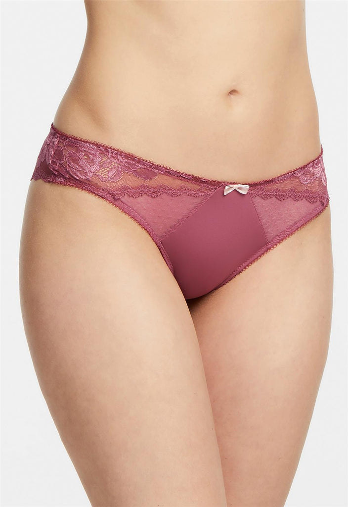 The sexy Brazilian you need in your panty drawer. Delicately cheeky, the blend of rose-patterned lace, microfiber and dotted mesh combine sex appeal, romance and comfort.